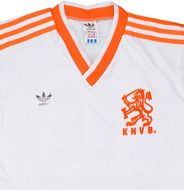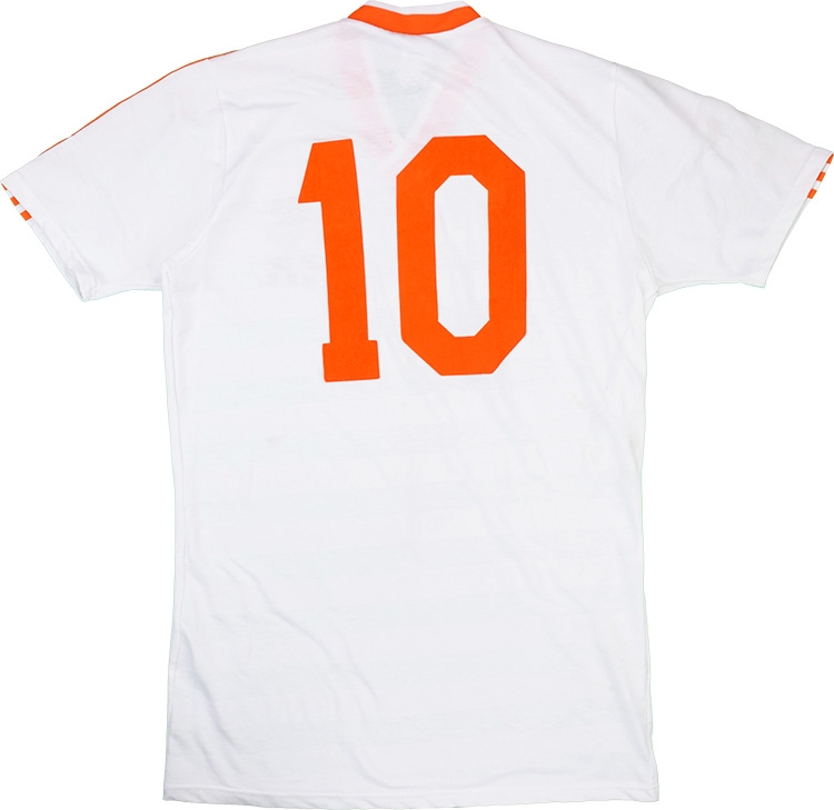 Correct player size flock print professionally machine stitched, flock KNVB crest and light transfer Adidas trefoil, made from 62% polyester and 38% cotton, made in West Germany, design not commercially available to this specification, comes from the players own collection - a signed letter verifying this can be provided.
