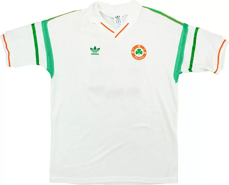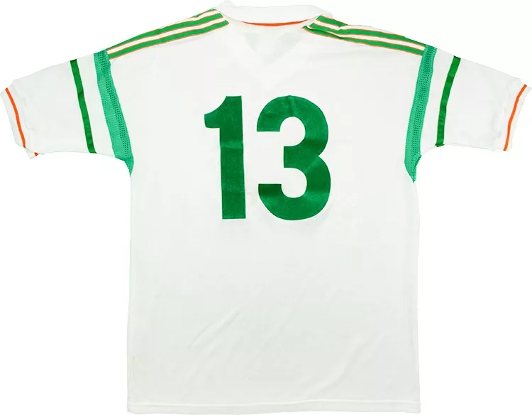 This white shirt was also used in another 0-0 stalemate this time with Hungary in May '89. The side went on to qualify for their first ever World Cup Finals in this time under boss Jack Charlton. Kelly made his debut in '87 and was on the bench for both of these matches and was assigned #13 for the Northern Ireland game. The forward went on to be a part of the Ireland squad for 10 years between 88-98 and despite winning only 26 caps he went to 3 major tournaments and scored 9 goals for his country.