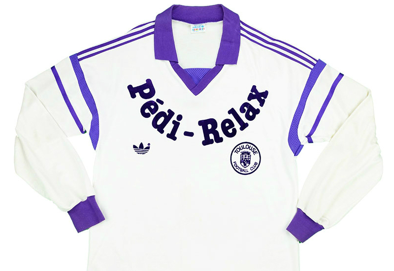 Toulouse 1988-90 long sleeved home shirt by Adidas with great vintage design and classic Pedi-Relax sponsor, as worn when the side finished mid-table in consecutive Division 1 seasons. Notable results included home and away wins over PSG in 89-90 and good home wins over Monaco in '88 and Marseille in '89.