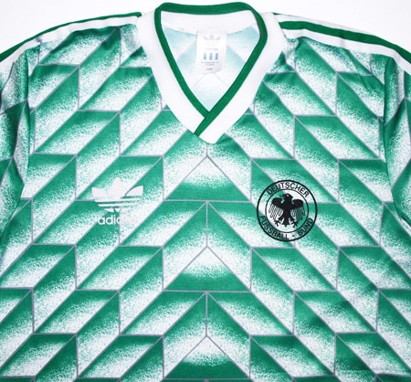 West Germany 1988-91 away shirt by Adidas as worn in the epic Semi-Final against England at Italia 90, where after a late Gary Lineker equaliser and extra-time, Germany finally triumphed with an ice cool penalty shoot out performance.
