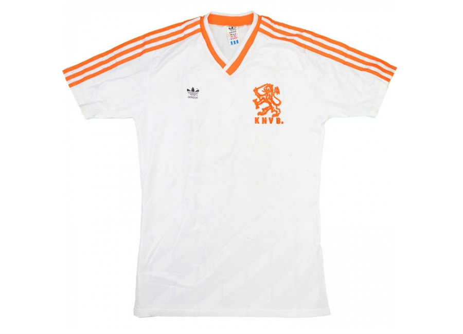 Oranje came away with hard-fought win here sneaking a late goal thanks to a Gerrit Plomp penalty when the match appeared to be heading towards a stalemate. The side held their nerve in the home leg to win after extra time but were then stunned by Greece at the Semi Final stage. Viscaal had been a part of the PSV team that won the '87 Eredivisie title and he helped his club retain that and go one better this year by winning the European Cup too and he played the full match in Spain, representing the U-21 team 13 times in total. This classic Adidas design was never used by the KNVB senior team who went from January '87 until November '88 without playing in their away kit. This white kit was intended for the 87-88 season but would not have been the away shirt for Euro '88