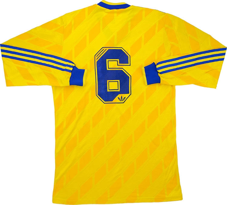 Sweden 1988 player shirt by Adidas believed to have been match worn by Thern in the friendly match against Wales played at Rasunda, Solna on the 27th April 1988.