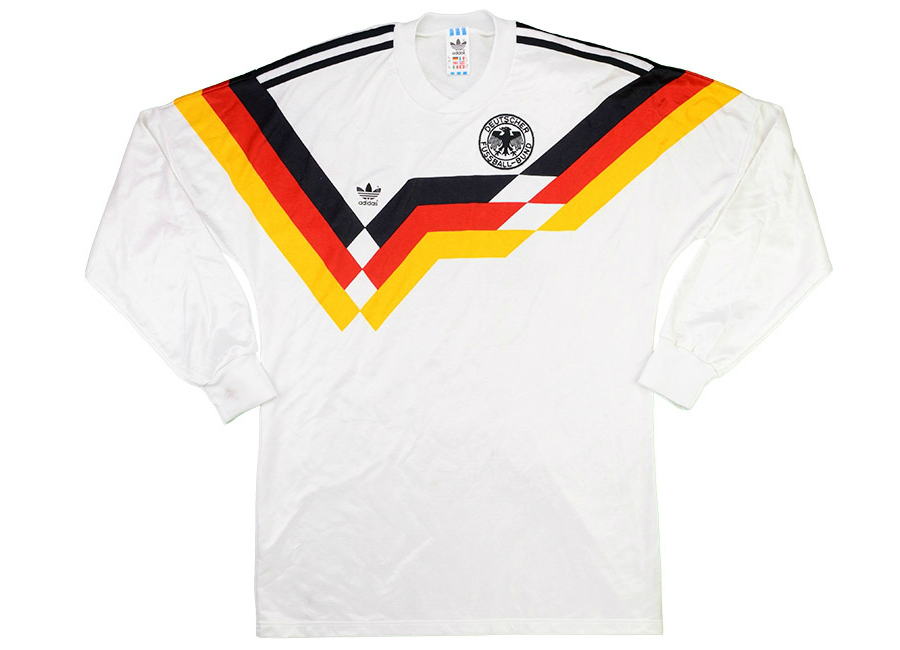 West Germany 1988 player shirt by Adidas believed to have been match worn by Matthaus in the 1990 World Cup Qualification Group 4 match against Holland played at Olympiastadion, Munich on the 19th October 1988.
