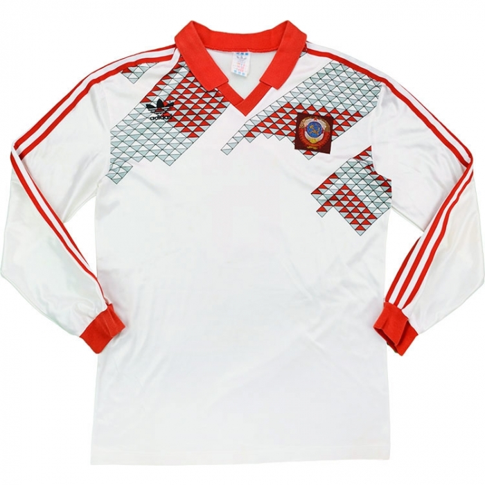 Despite Cameroon's impressive performances, Valeriy Lobanovskyi's men routed the Africans 4-0 in the final group game wearing this design. It would be the last ever major international finals played by the Soviet Union.