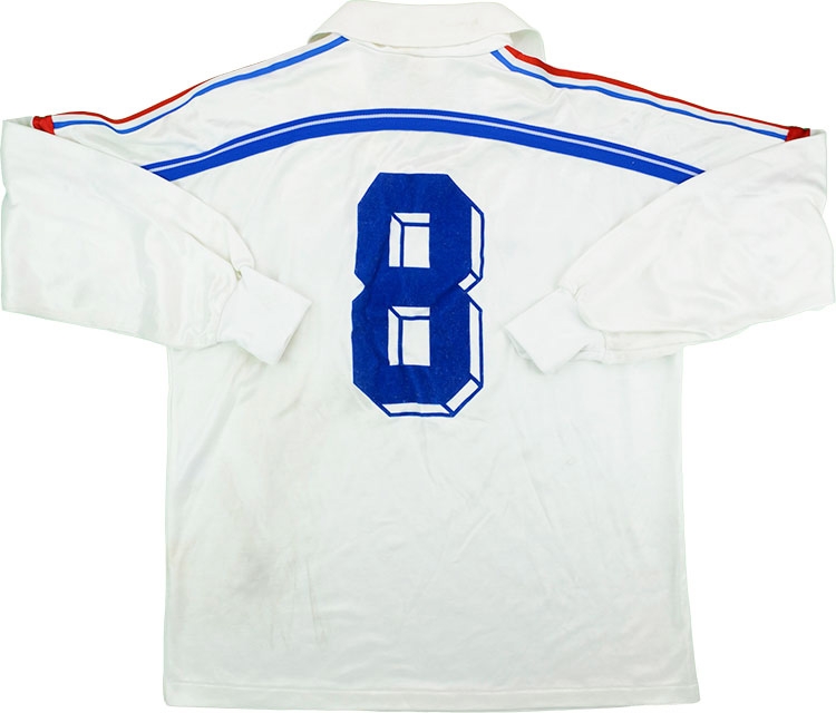 Sauzée was making his 5th start for Les Bleus who were in the middle of their qualifying campaign for the 1990 World Cup under new boss and hero Michel Platini. This superb Adidas design was worn between 1986-90 and the away version was never available to buy as a replica. Sauzée went on to win three Division 1 titles as part of the great Marseille side of the late 80's and early 90's and represented the FFF until 1993 when he retired following 39 appearances and an impressive 9 goals.