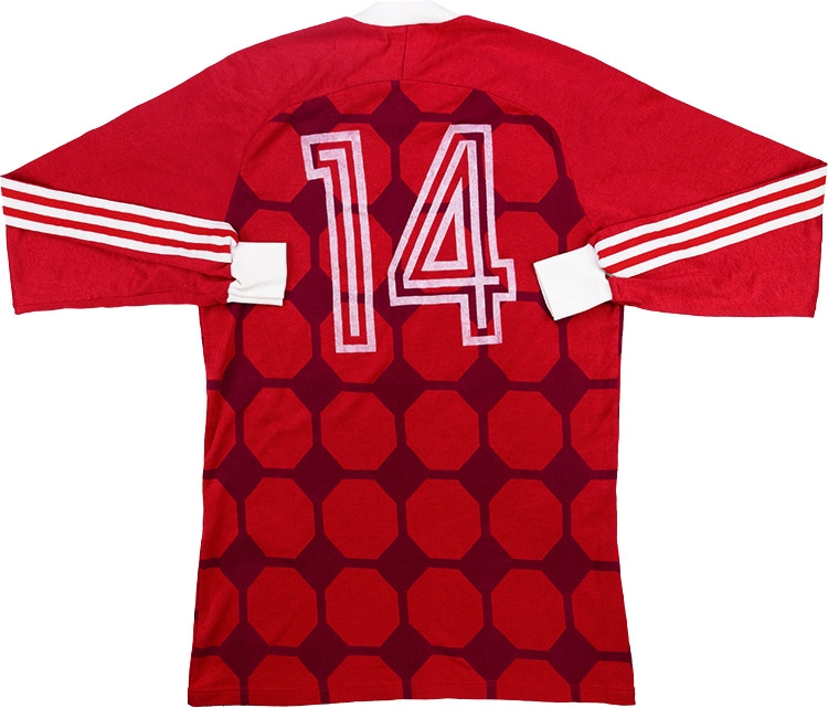 Soviet Union 1989 player shirt by Adidas believed to have been issued to or worn by a #14 during 1989 when the side earnt qualification to the 1990 World Cup in Italy after winning a group containing Austria, Turkey, Iceland and political allies East Germany.