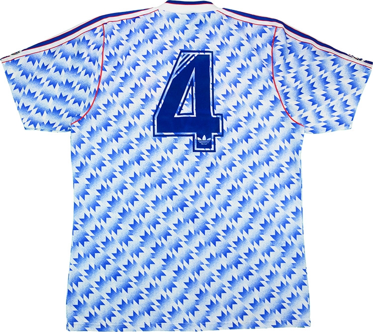 The regular #4 during this time was the iconic no-nonsense centre back Steve Bruce. Correct player size flock Adidas print professionally heat pressed, fully embroidered club badge and Adidas logo with ®, cloth Football League sleeve patches are machine stitched, comes from the collection of a Man Utd player who was a squad member during this time - a signed letter verifying this will be provided.