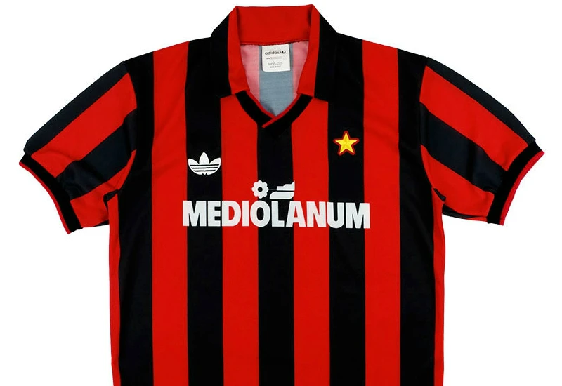 AC Milan 1991-92 Home shirt by adidas with classic Mediolanum sponsor as worn when the side won the Serie A title without losing a league match all season in boss Fabio Capello's first term in charge. Marco van Basten was capocannoniere with 25 goals.