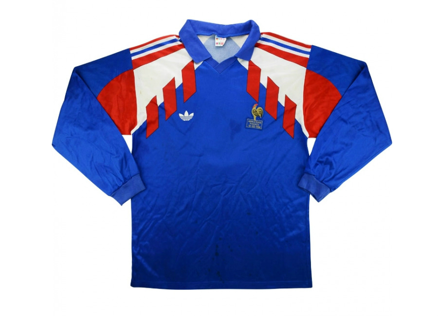 France 1992 player shirt by Adidas believed to have been match worn by Angloma in the friendly match against England played at Wembley on the 19th February 1992.