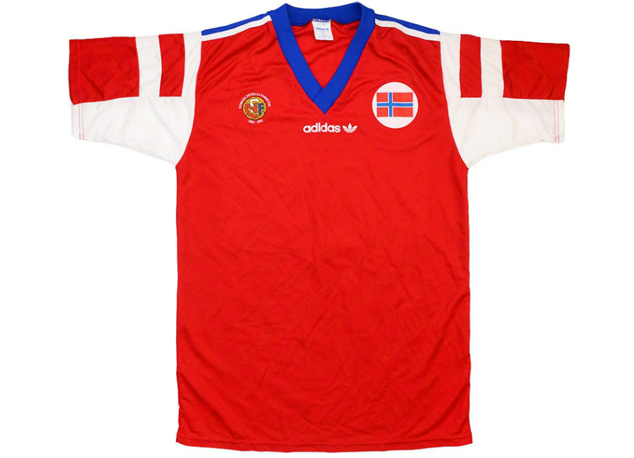 Norway U-18 1992 player shirt by Adidas believed to have been match worn by a #6 in the 1992 UEFA European Under-18 Championship Third Place Match against England played at Stadion Am Schanzl, Amberg on the 20th July '92.