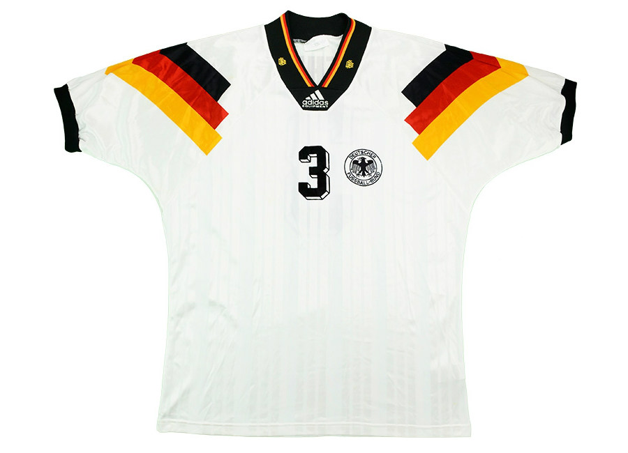 Germany 1993 player shirt by Adidas believed to have been issued to or match worn by Brehme on the North American Tour of December '93 and was given as a gift following the match against USA played at Stanford Stadium, San Francisco.