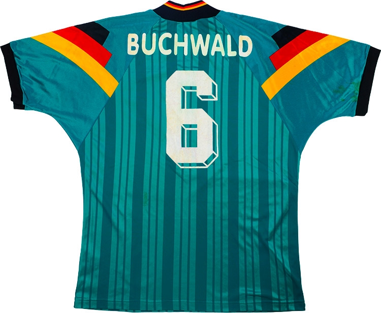 Riedle bagged a hat-trick after Klinsmann had scored the opener with Dooley hitting a brace for the USA. Buchwald played the full match and was still integral to the side, going on to play at the 1994 World Cup before retiring from the international scene with 76 caps to his name. This is the first time a Germany away shirt had ever been worn with a name and number on the back after the home version was worn throughout Euro 92, making it a very special and collectable piece.