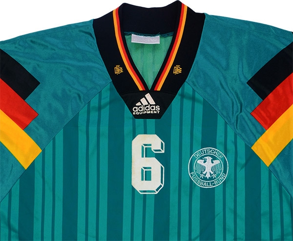 Germany 1993 player shirt by Adidas believed to have been worn by Buchwald #6 in the 1993 US Cup match against USA played at Soldier Field, Chicago on the 13th June '93.