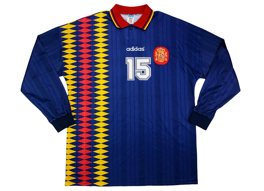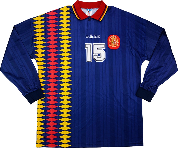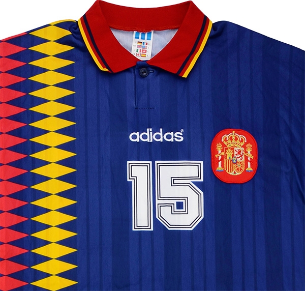 Spain 1994 player shirt by Adidas believed to have been match worn by Amavisca in the Euro 96 Qualification Group 2 match against Belgium played at Constant Vanden Stock Stadium, Brussels on the 17th December '94.