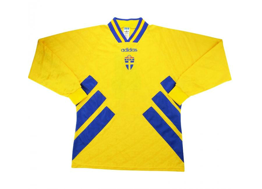 Sweden 1994 player shirt by Adidas believed to have been match worn by Björklund in the Euro 96 Qualification Group 3 match against Hungary played at Råsunda Stadion, Solna on the 16th November '94.