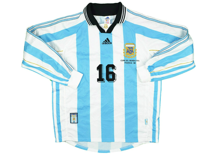 Argentina 1998 player shirt by Adidas believed to have been issued to Berti for the 1998 World Cup Quarter Final against Holland played at Stade Vélodrome, Marseille on the 4th July '98.