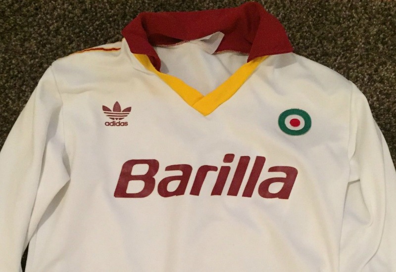 AS Roma 1991 adidas away shirt. In good condition for a 23 year old shirt with just a few bobbles and pulls. The label is washed out but measures 20 inches from pit to pit making it a size 40 inches.