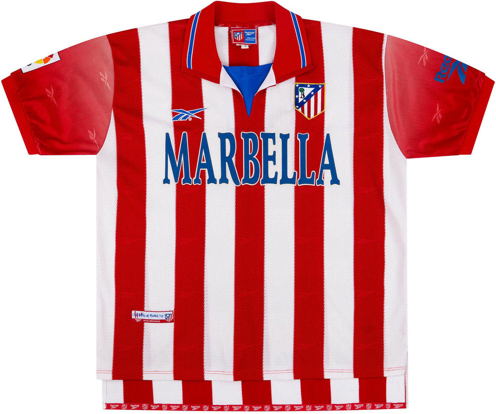 Atletico Madrid 1998-99 home shirt by Asics as worn in the season when the side reached the UEFA Cup Semi-Finals and the Final of the Copa del Rey. They also enjoyed a 3-1 win over rivals Real Madrid in the last home match of the campaign.