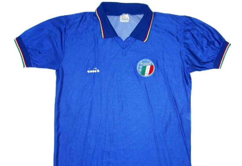 Italy 1986-90 Home shirt by Diadora as worn by Italy when they hosted the 1990 World Cup where reached the Semi-Finals only to lose on penalties to Maradona's Argentina in Naples.