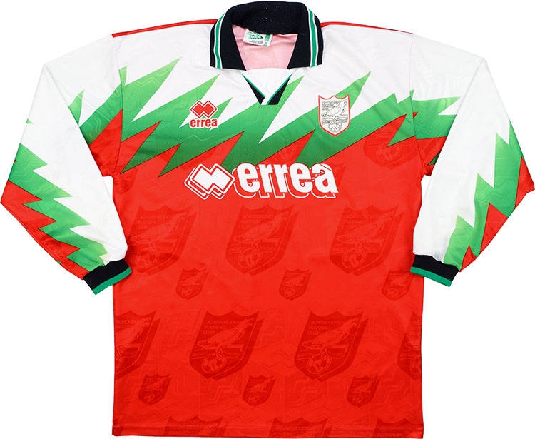 Scarborough 1997-98 away shirt by Errea with great standout design as worn when the side reached the Division Three Play-Offs but were thrashed by Torquay 7-2 in the Semi-Finals.