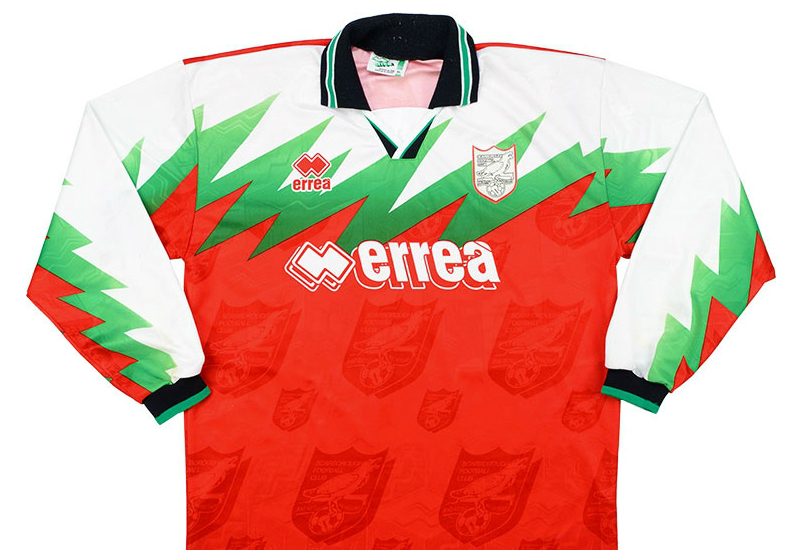 Scarborough 1997-98 away shirt by Errea with great standout design as worn when the side reached the Division Three Play-Offs but were thrashed by Torquay 7-2 in the Semi-Finals.