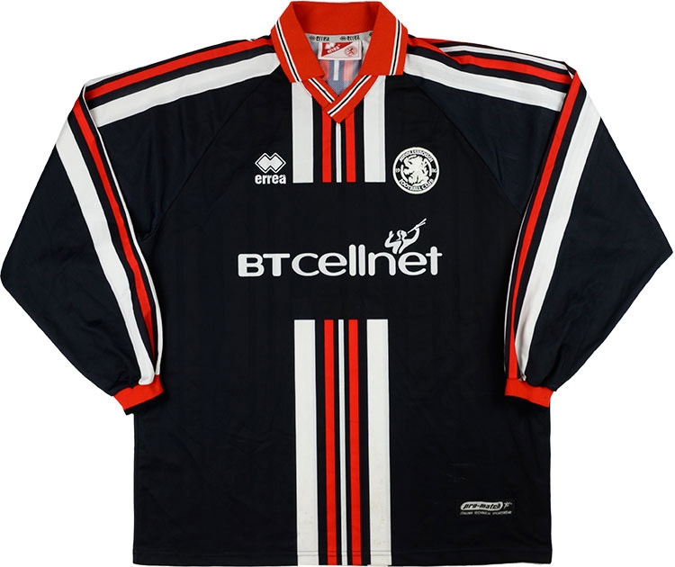 Middlesbrough player shirt by Errea believed to have been issued to or worn by a #7 in a friendly or reserve team match in the 2000-01 season when the side finished 14th in the Premiership in Bryan Robson's last season in charge.