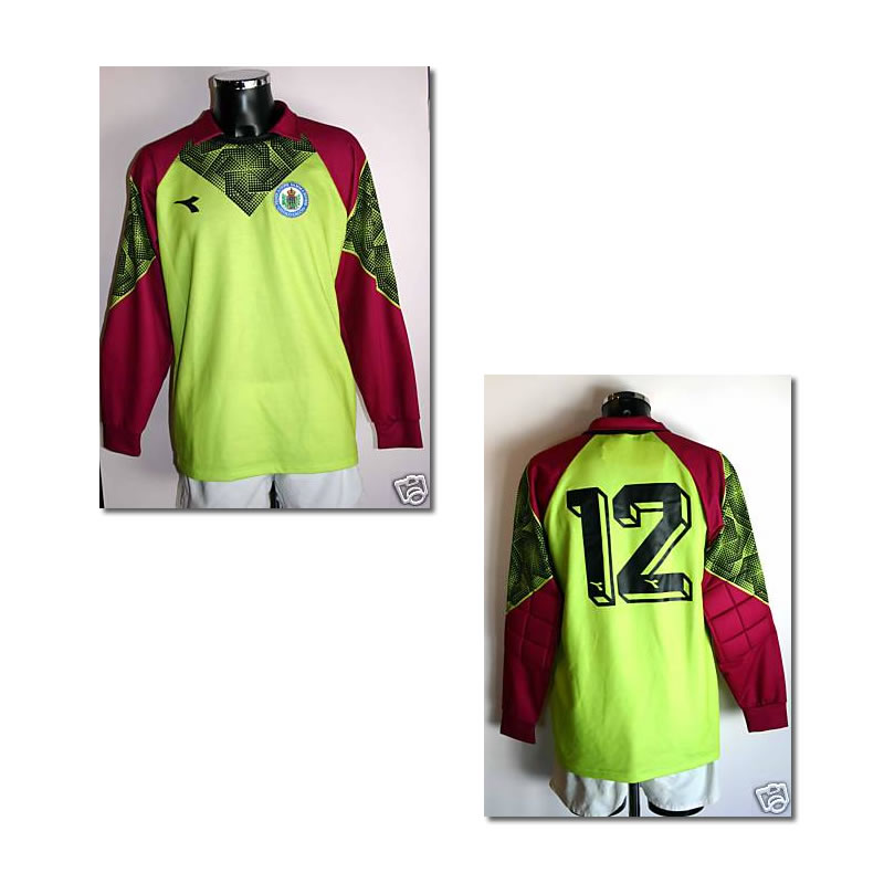 SAN MARINO MATCH WORN PLAYER SHIRT V SCOTLAND 1996 SAN MARINO MATCH WORN PLAYERS SHIRT FROM THE MATCH V SCOTLAND PLAYED IN 1996 DIADORA GOALKEEPERS SHIRT NUMBER NO.12 SHIRT SIZE XL. BADGE IS EMBRIODERED AND THE NUMBER IS IRONED ON VINYL. PURCHASED THIS SHIRT FROM THE STUART McMILLAN COLLECTION, WHICH WAS SOLD AT McTEARS AUCTION IN GLASGOW IN 2006. STUART McMILLAN WORKED WITH THE SCOTLAND SQUAD FOR MANY YEARS AND WAS KNOWN AFFECTIONATELY AS 'OMAR', HIS COLLECTION WAS MADE UP OF THE MANY SHIRTS THAT PLAYERS GAVE HIM OVER THE YEARS, BOTH PLAYER SWOP SHIRTS AND SCOTLAND SHIRTS ALL THE FEATURES YOU WOULD ASSOCIATE WITH A GENUINE PLAYER SHIRT.