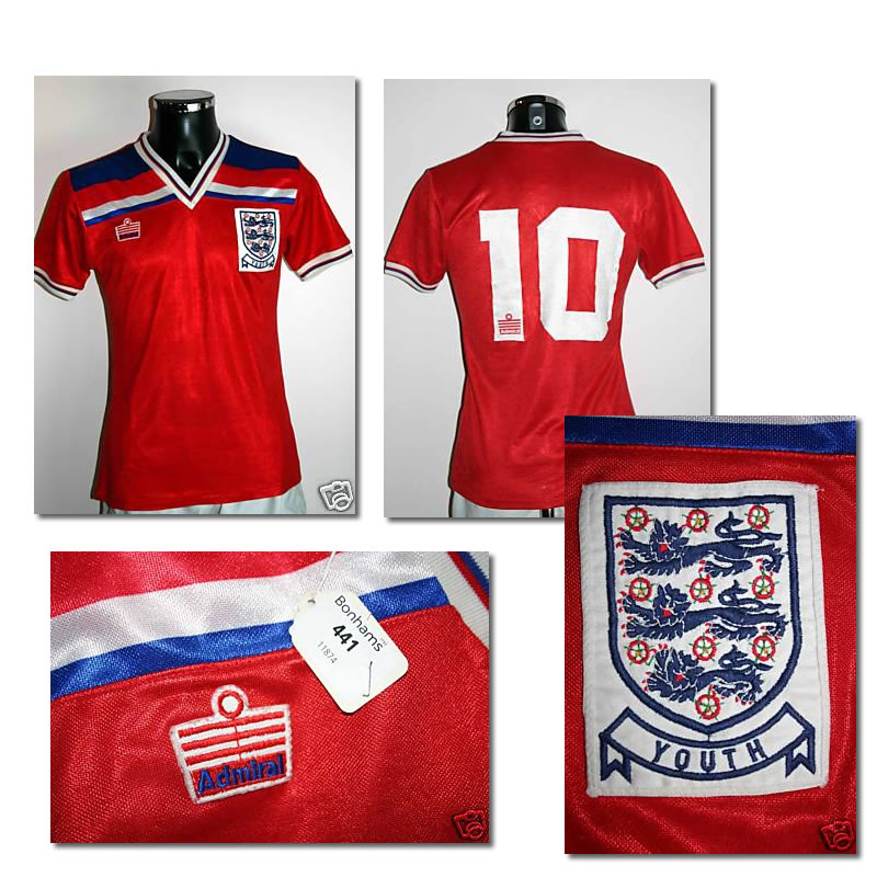 ENGLAND MATCH WORN YOUTH PLAYER SHIRT V DENMARK 1976 ENGLAND MATCH WORN YOUTH PLAYERS SHIRT V DENMARK 1976 ADMIRAL SHIRT NUMBER NO. 17 SHIRT SIZE M. BADGE IS EMBRIODERED AND THE NUMBER IS SEWN ON. ALL THE FEATURES YOU WOULD ASSOCIATE WITH A GENUINE PLAYER SHIRT.