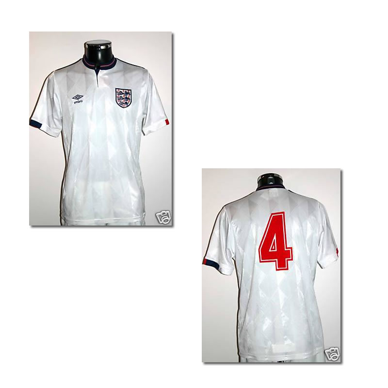 ENGLAND MATCH WORN PLAYERS SHIRT FOR GAME V'S DENMARK UMBRO SHIRT NO.4 DES WALKER SHIRT SIZE MEDIUM HAVE NOT GOT THE DETAILS OF THE YEAR THE MATCH WAS PLAYED. ALL THE FEATURES YOU WOULD ASSOCIATE WITH A GENUINE PLAYER SHIRT.