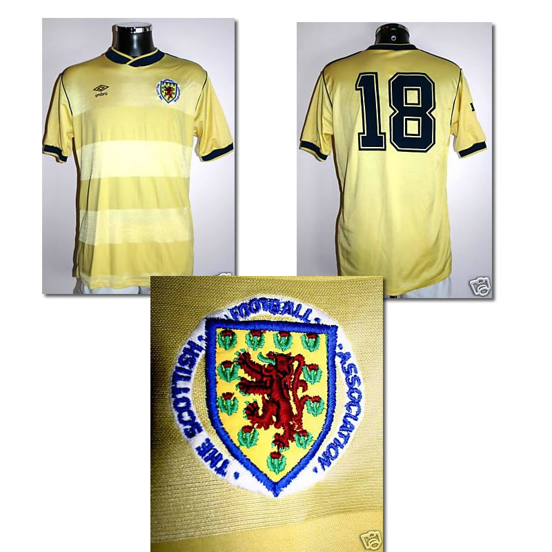 VINTAGE RARE SCOTLAND MATCH WORN PLAYERS SHIRT WORN BY GRAEME SHARP UMBRO SHIRT NO.18 GRAEME SHARP SHIRT SIZE L RARE AWAY SHIRT FROM 1986 SCOTLAND BADGE & UMBRO LOGO ARE EMBRIODERED, AND THE PLAYER NUMBER IS FELT IRONED ON CONDITION IS EXCELLENT ALL THE FEATURES YOU WOULD ASSOCIATE WITH A GENUINE PLAYER SHIRT.