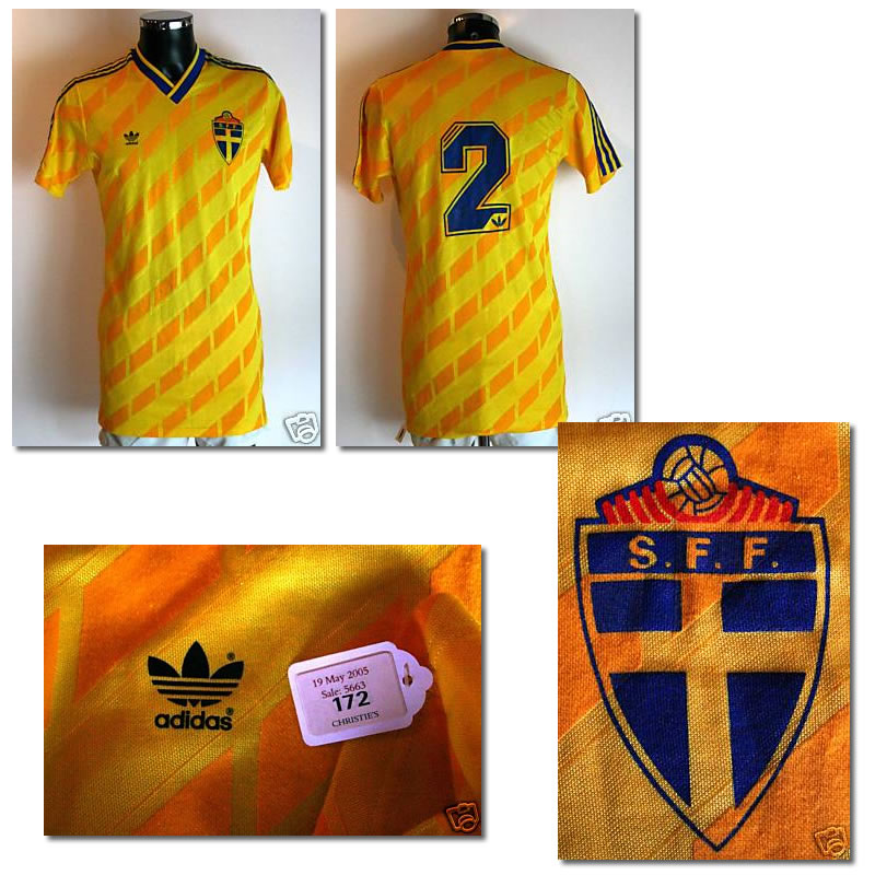 SWEDEN MATCH WORN PLAYERS SHIRT FROM THE MATCH V ENGLAND 19TH OCTOBER 1988 ADIDAS SHIRT NUMBER NO.2 ROLAND NILSSON SHIRT SIZE XL. ADIDAS LOGO AND SHIRT BADGE ARE PRINTED AND THE NUMBER IS VUNYL PAINT IRONED ON. PURCHASED AT CHRISTIES LONDON IN 2005 ALL THE FEATURES YOU WOULD ASSOCIATE WITH A GENUINE PLAYER SHIRT. I AM CURRENTLY SELLING OFF A LARGE SECTION OF MY PLAYER SHIRT COLLECTION.