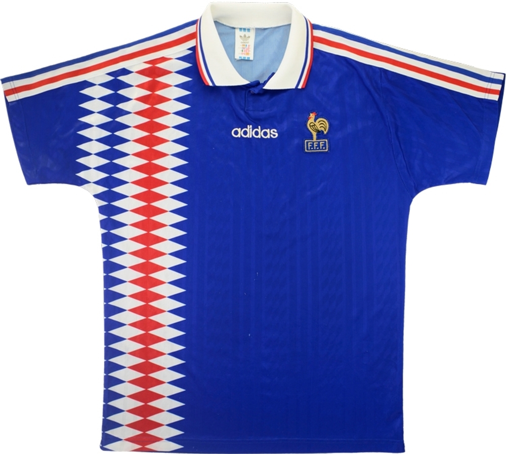 France 1994-96 Home shirt by adidas as worn when the side qualified for Euro '96 in second place - despite going unbeaten in their qualifying campaign.