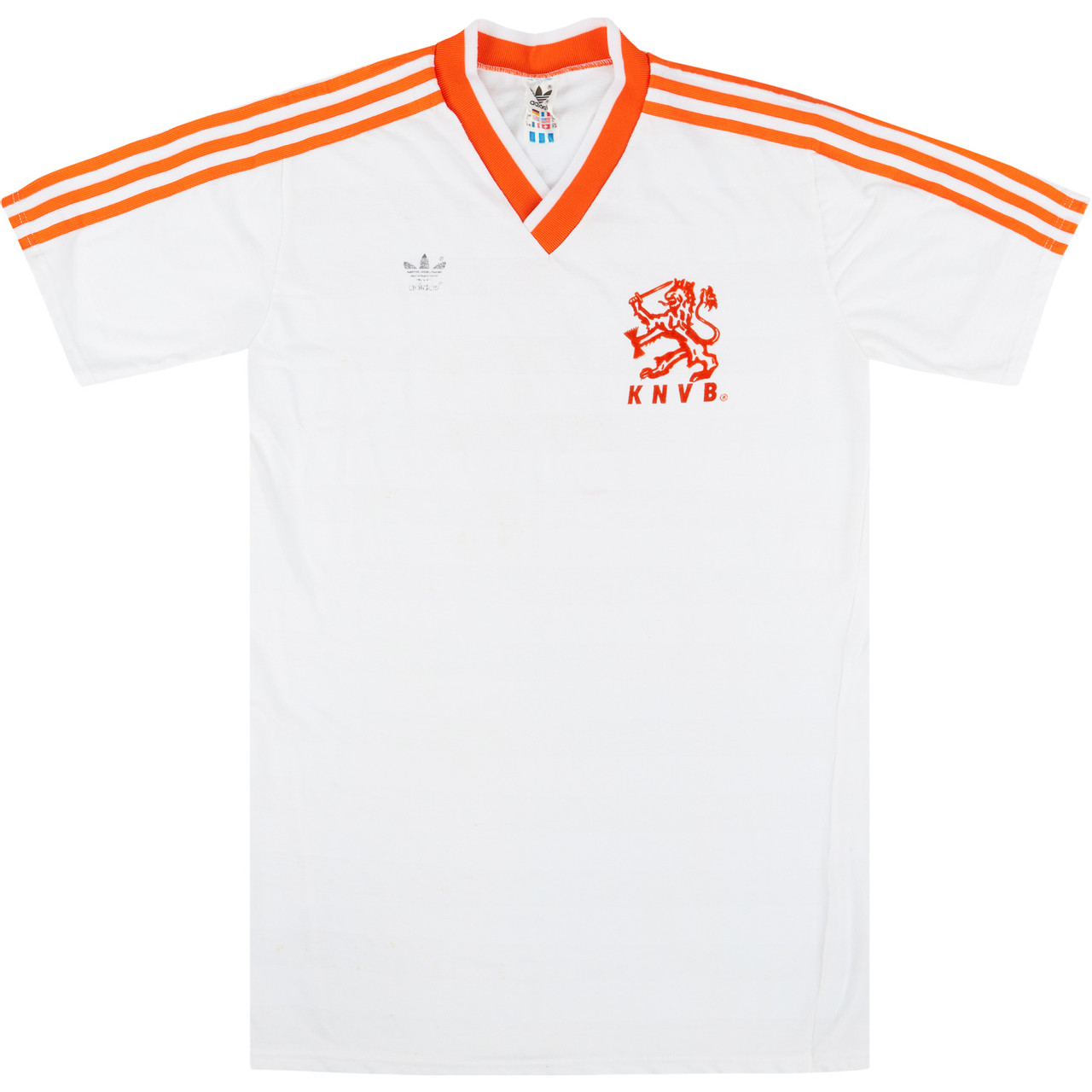 Netherlands 1987 player shirt by adidas believed to have been match worn by van't Schip in the friendly match against Spain played at the Nou Camp, Barcelona on the 21st January 1987.