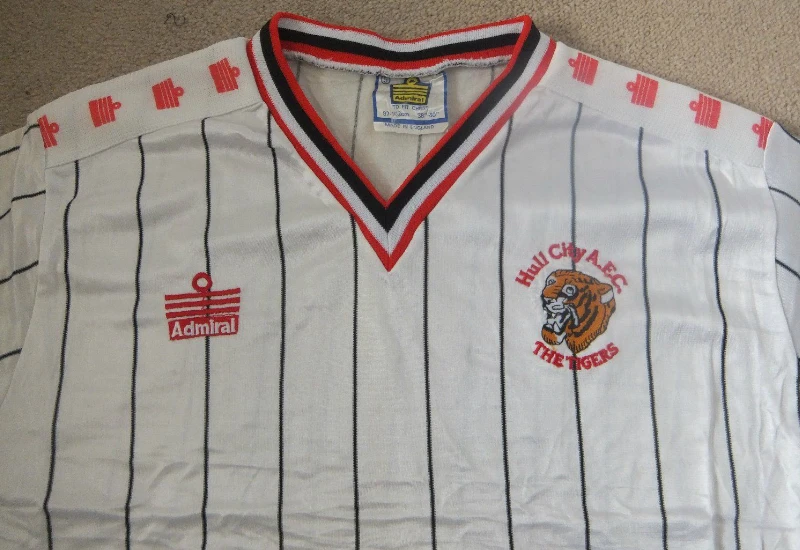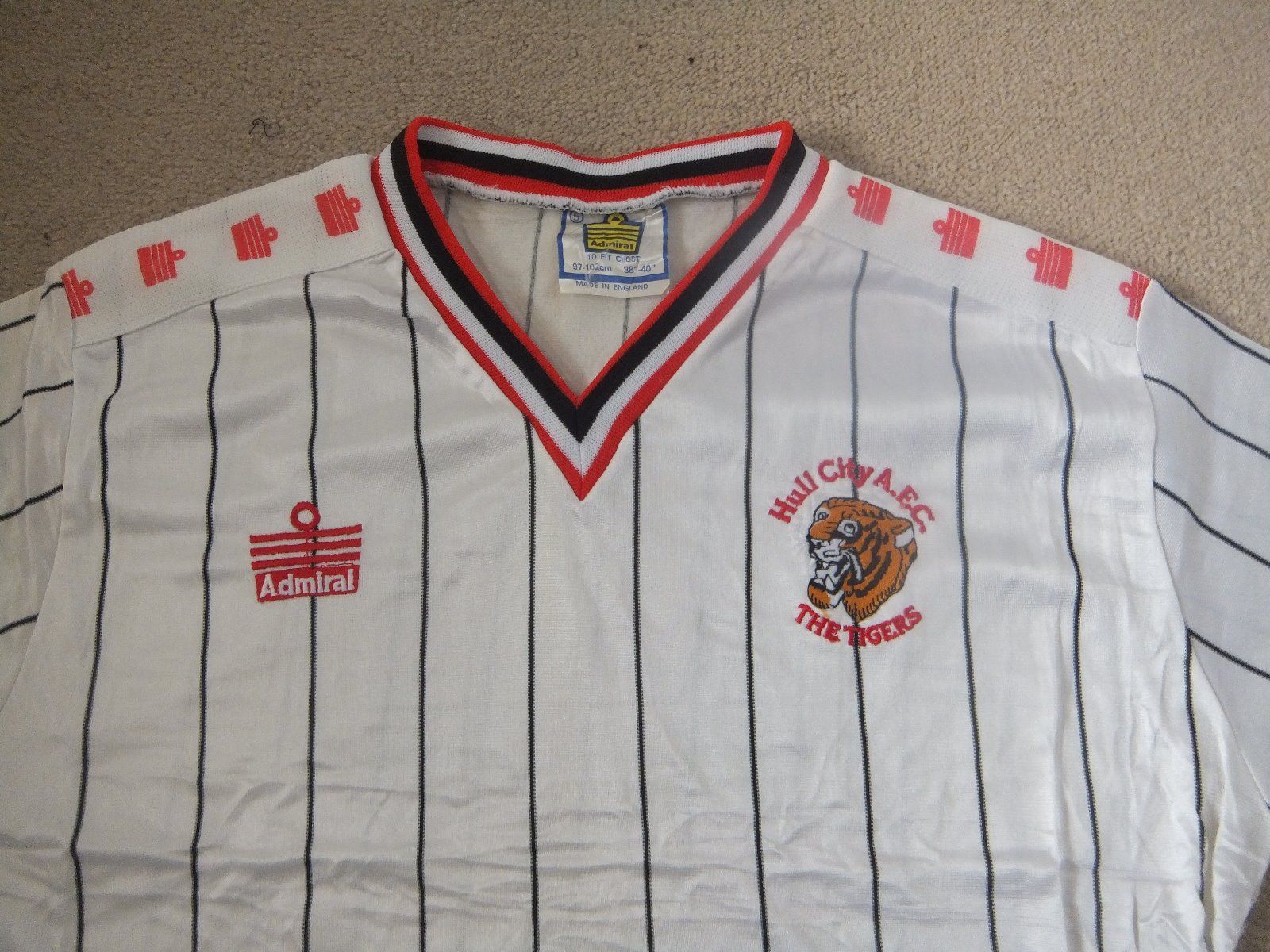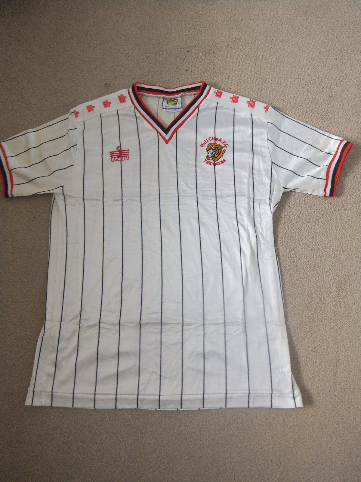 A very hard to find vintage rare Admiral Hull City away shirt from the 1986/87 season. The shirt is a Size 5, which is Medium (38/40). It is in mint unworn condition and has been kept vacuum packed for many years.