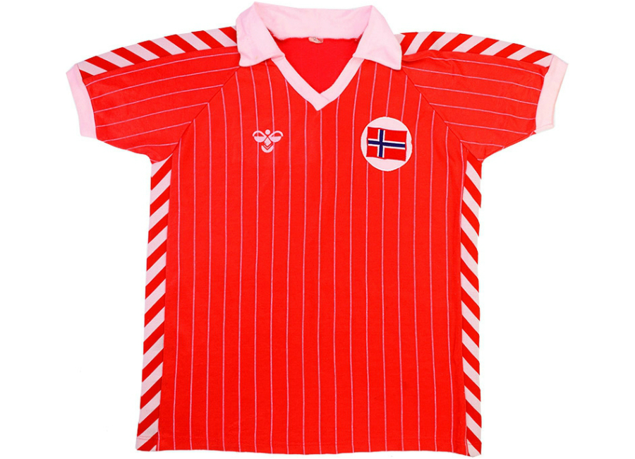 Norway 1983 player shirt by Hummel believed to have been match worn by Albertsen in the Euro 84 Qualification Group 4 match against Wales played at Ullevaal Stadium, Oslo on the 21st September 1983.
