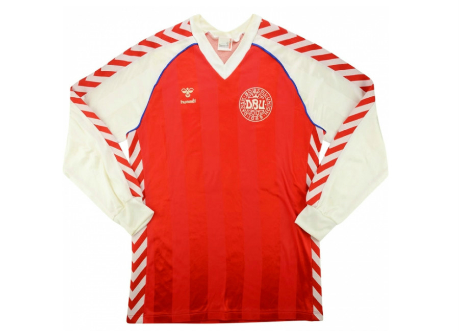 Denmark 1984 player shirt by Hummel believed to have been match worn by Brylle in the 1986 World Cup Qualification Group 6 match against Ireland played at Parken Stadium, Copenhagen on the 14th November '84.