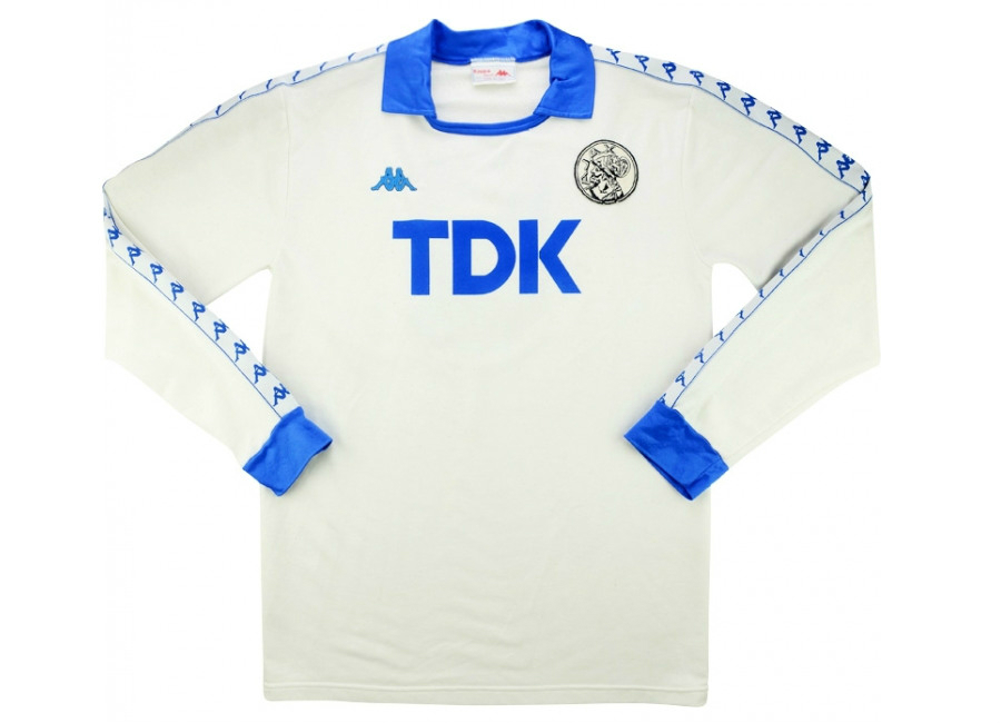 The midfielder made 19 appearances in all competitions scoring 6 goals as the side finished runners-up in the Eredivisie. Jonk established himself as a regular under Louis van Gaal and his great form saw him go to Euro '92 and then be poached by Serie A giants Inter Milan. This superb white Kappa design was worn in 87-88 also but with a white collar and even in 88-89 the short sleeve version had a white collar.