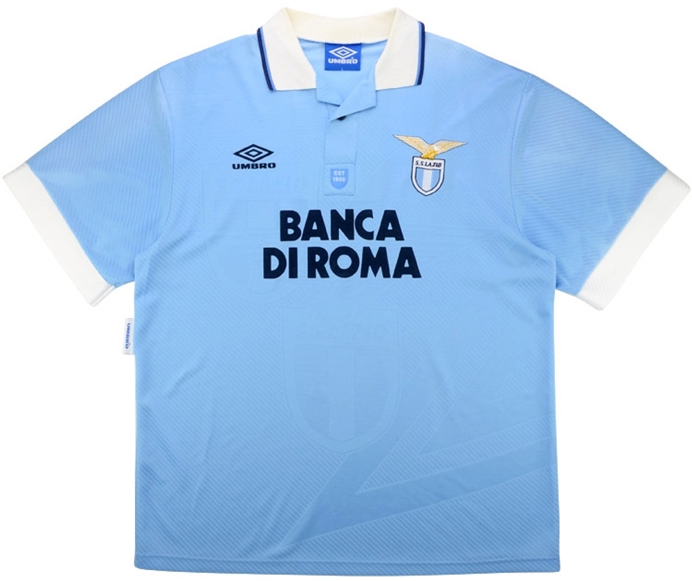Lazio 1993-95 home shirt by Umbro as worn in Gazza's last season at the club and when the side finished runners-up in Serie A in 94-95, their highest finish since the '74 Scudetto triumph.