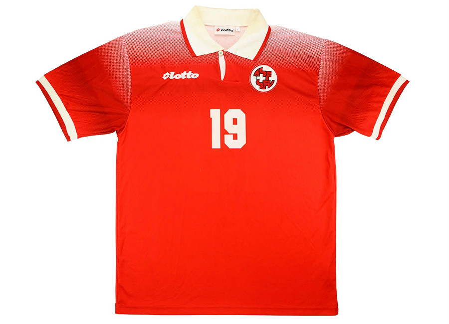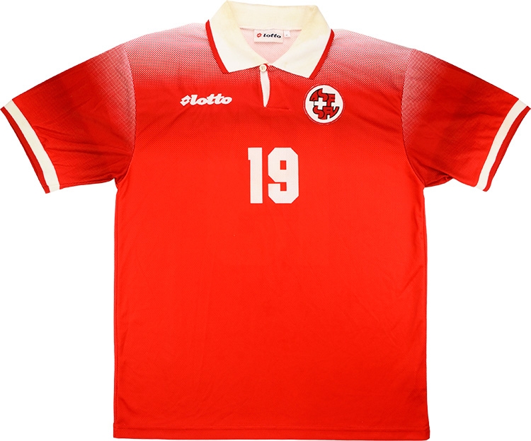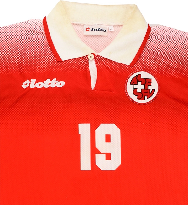 Switzerland 1997 player shirt by lotto believed to have been issued for the 1998 World Cup Qualification Group 3 match against Finland played at Stade Olympique de la Pontaise, Lausanne on the 6th September '97.