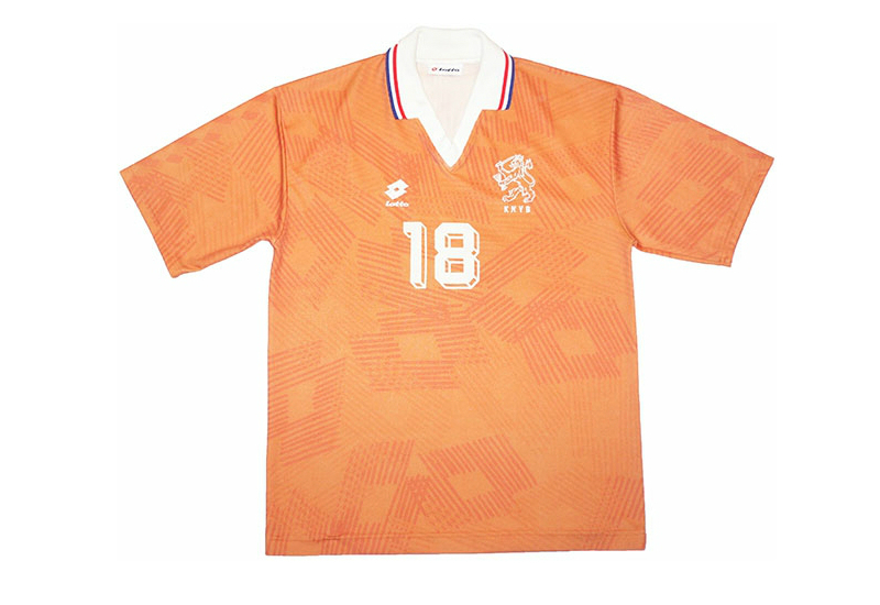 Holland 1992 home shirt by Lotto as prepared for the Euro '92 tournament in Sweden when the side reached the Semi-Finals but a penalty shoot-out defeat to Denmark stopped them from retaining their title.