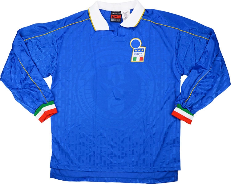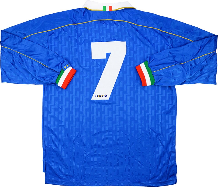 Nike 1994-96 Italy player shirt believed to have been issued to or worn by a #7 during the successful qualification campaign for Euro 96 when the Azzurri finished 2nd in Group 4 behind Croatia. Regular #7 during this time was Metrostars midfielder Roberto Donadoni.