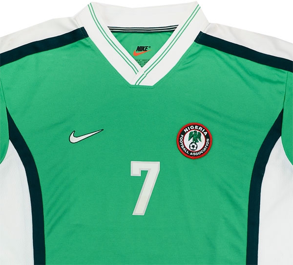 Nigeria 1998 player shirt by Nike believed to have been match worn by Finidi George in the friendly match against Holland played at the Amsterdam ArenA on the 5th June 1998.