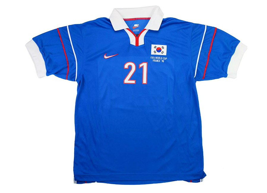 The precocious youngster Lee Dong-Gook came on as a substitute in the 77th minute to make his tournament debut. The striker had only played for The Reds for the first time in 1998 and would go on to one of their star men for years to come making 103 appearances scoring 33 goals before retiring in 2014, also playing in the Premier League with Middlesbrough. Korea lost all of their group games at France 98 and this was the only match they played in this blue shirt.