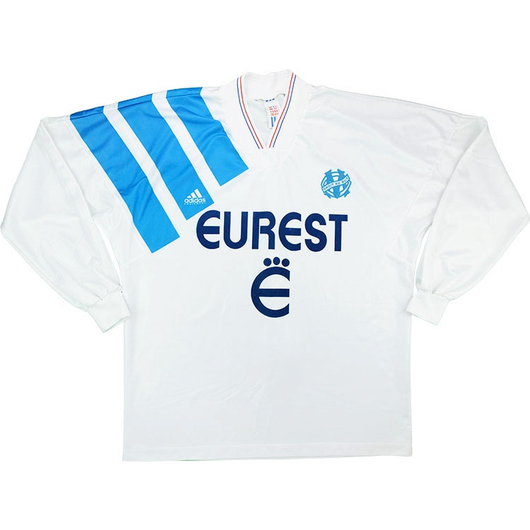 Olympique Marseille 1993-94 Eurest sponsored home shirt by adidas as worn when the side were stripped of their 92/93 league title and relegated to Ligue 2 after a bribery scandal.