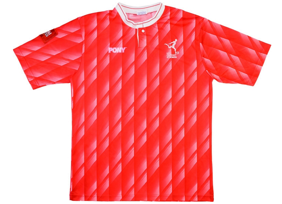 Correct player size Pony print professionally heat pressed, fully embroidered NZFA Centenary 1891-1991 crest, light transfer Pony logo, machine stitched Winfield All Whites patch, made in New Zealand, swapped with an England player and comes from their collection - a signed letter verifying this can be provided.