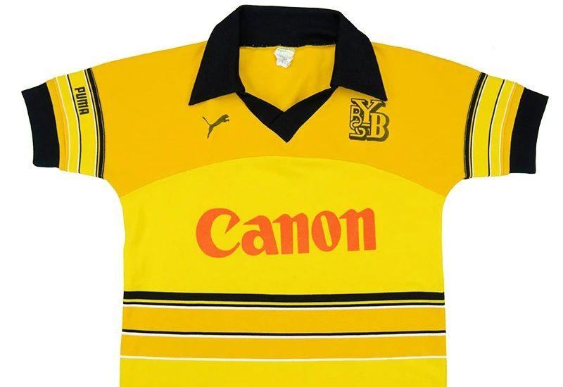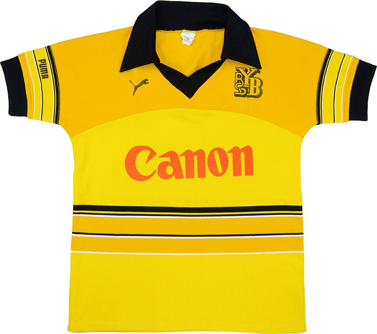 BSC Young Boys 1981-83 home shirt by Puma with great vintage design and classic Canon sponsor as worn when the side finished 5th and 9th respectively place under boss Lambert Theunissen.