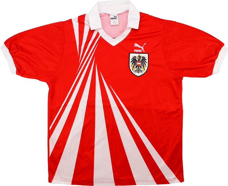 Austria 1990 player shirt by Puma believed to have been worn by Pfeffer #4 in the 1990 World Cup Group A match against USA played at Stadio Artemio Franchi, Florence on the 19th June '90.