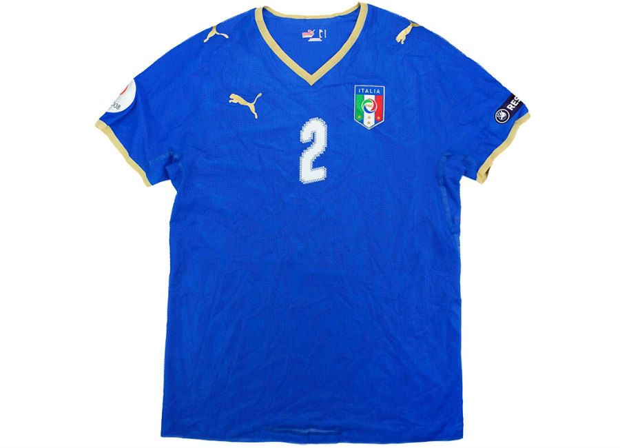 Italy 2008 player shirt by puma believed to have been match worn by Panucci in the Euro 2008 Group C match against Holland played at Stade de Suisse, Bern on the 9th June '08.