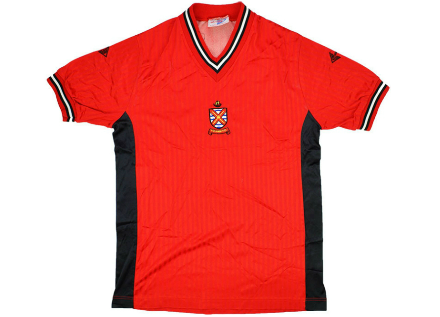Fulham 1987-89 player shirt by Scoreline believed to have been issued to or match worn by a #14 during the season when the side reached the Third Division Play-Offs in '89 under boss Ray Lewington.