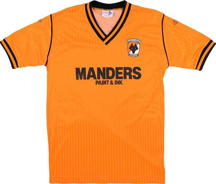 Wolverhampton Wanderers 1988-89 home shirt by Scoreline with great vintage design and classic Manders sponsor as worn when the side won the Third Division championship in '89 under boss Graham Turner.